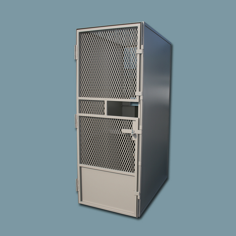 The Temporary Holding Module is a heavy steel and steel mesh construction. Multipoint locking door. Door slam prevention. Unit delivered fully assembled. Drop ship/dockside delivery. This item includes an open slot in the back of the module for ease of retreiving and delivering books.