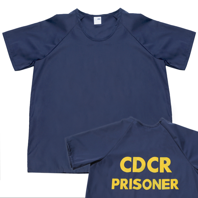 - Silk-screened on back, “CDCR PRISONER” in yellow ink