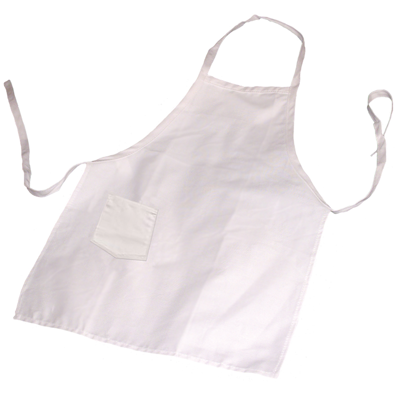 The Unisex Kitchen Bib Apron has a generous patch pocket on the right front. Wide neck strap and long ties that can be tied in front or back.