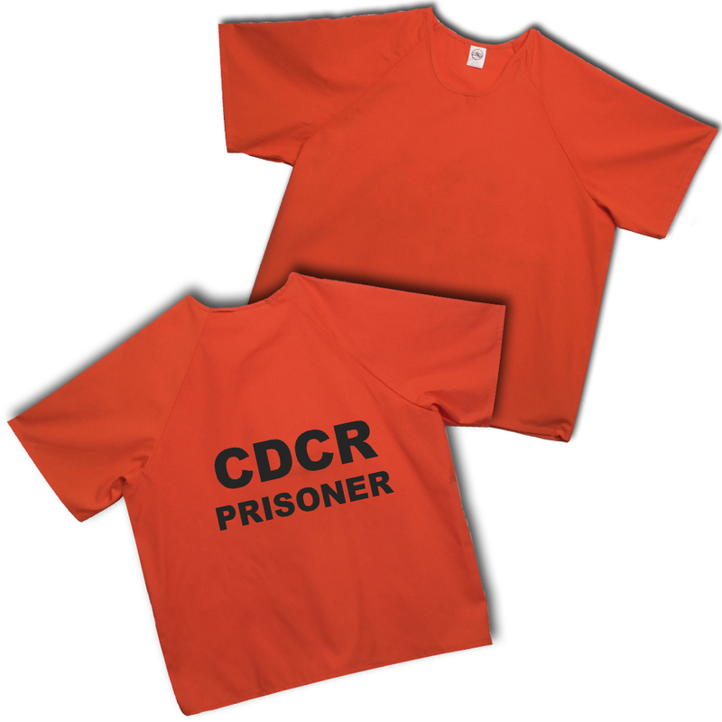 Men’s & Women’s Orange Round-Neck Slip-On Shirt has "CDCR PRISONER" silk-screened on back in black ink.
