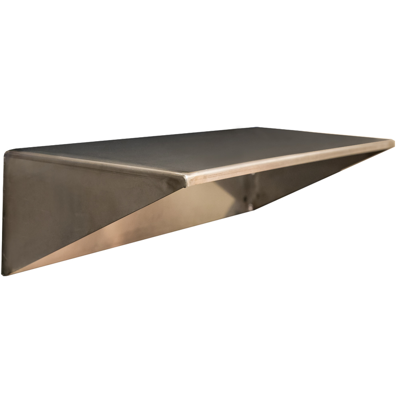 The Stainless Steel Wall Mount TV Shelf is made of 12 gauge stainless steel and is an all-weld construction. Pre-punched holes for wall attachment.